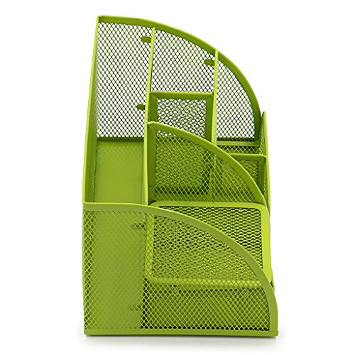 BTSKY - Porta oggetti da scrivania a 6 scomparti multi-funzionale, salvaspazio per ufficio, contenitore per cancelleria con cassettino portaoggetti, struttura a rete Green