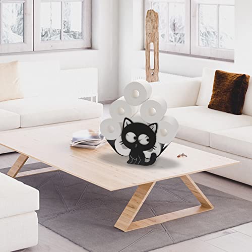 BTSKY Porta rotolo di carta igienica in metallo, nero opaco, stile animale, autoportante e montaggio a parete, contenitore per carta igienica per bagno, casa, cucina, WC (gatto)