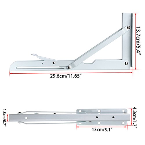 Robuste e durevoli: realizzate in acciaio di qualità con superficie liscia e resistente per un'azione accurata. Carico massimo 60 kg circa. Dimensioni: foro per vite: circa 5 mm. Attenzione: le staffe per mensola pieghevoli non sono dotate di viti e fissaggi. Potrete acquistare le viti adatte secondo le vostre esigenze.