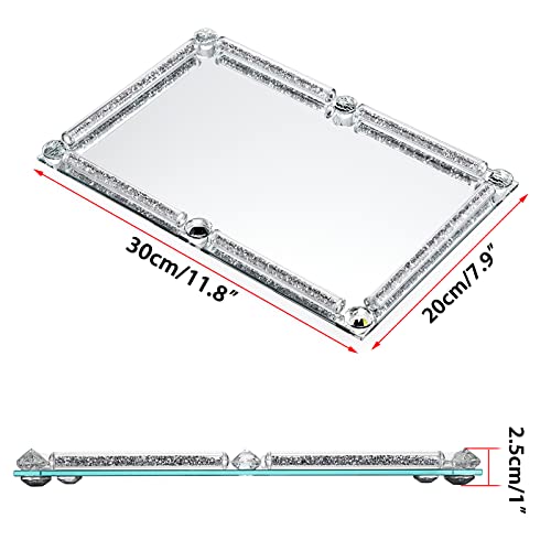 BTSKY Vassoio in vetro specchiato con cornice a diamanti schiacciati, 30 x 20 cm, vassoio decorativo rettangolare per cosmetici, profumi e bigiotteria, vassoio da portata per tazze, decorazioni per la