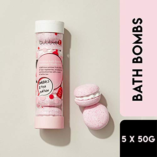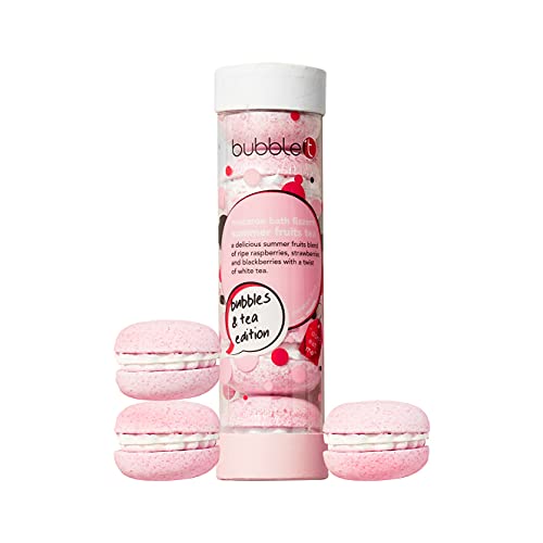 Bubble T Cosmetics Summer Fruits Tea Mini Macaron Bath Fizzer Bombs, Packed With Berry Extracts to Cleanse and Nourish Skin With an Uplifting Fragrance, 5 x 50g