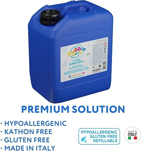 Bubble World- Bubble Word-Ricarica Sapone-Liquido Pronto all'Uso per Bolle e giocabolle-Ipoallergenico-Senza Kathon e Privo di Glutine-Made in Italy, 5 L, 103.645000