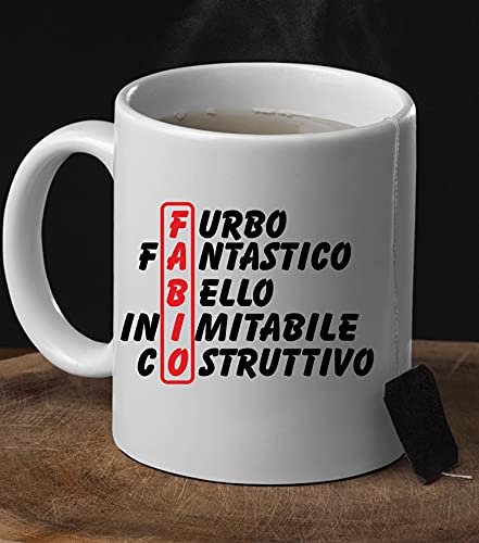 Bubbleshirt Tazza Mug in ceramica Compleanno - Fabio e aggettivi simpatici - evento - idea regalo