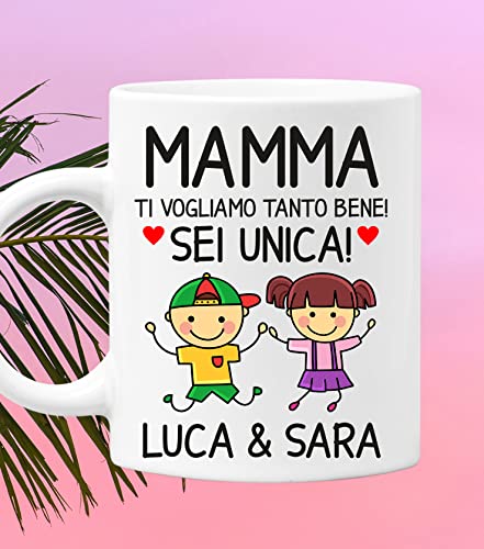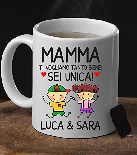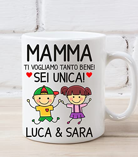 Bubbleshirt Tazza Mamma Personalizzabile Maschietto e Femminuccia Festa della Mamma Ti Vogliamo Tanto Bene! Sei Unica! Regalo Mamma