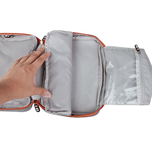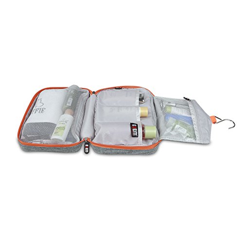 BUBM Borsa da Toilette Con gancio per appendere,Beauty Case per Viaggio/Attività Commerciale (Grigio e arancione)