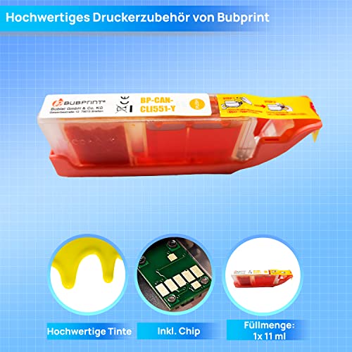 Bubprint Cartuccia compatibile per Canon CLI 551 XL Y CLI-551XL 551XL per Pixma IP7250 IP8750 IX6850 MG5450 MG6450 MG6650 MG7550 MX920 MX925 Giallo