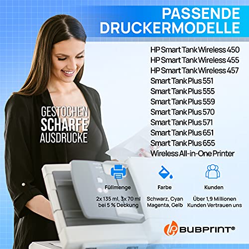Bubprint Compatibile con 5 flaconi di inchiostro di ricambio per HP 31 32 XL per Smart Tank Plus 551 555 559 570 571 651 655 Wireless All-in-One Smart Tank Wireless 450 455 457