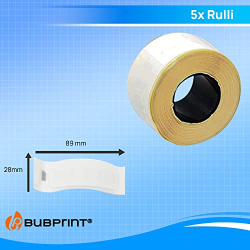 Bubprint 5 Etichette compatibile per Dymo 99010 S0722370 per Labelwriter 310 320 330 Turbo 400 Twin Turbo Duo 450 Twin Turbo Duo SE450 28MM X 89MM Bianco