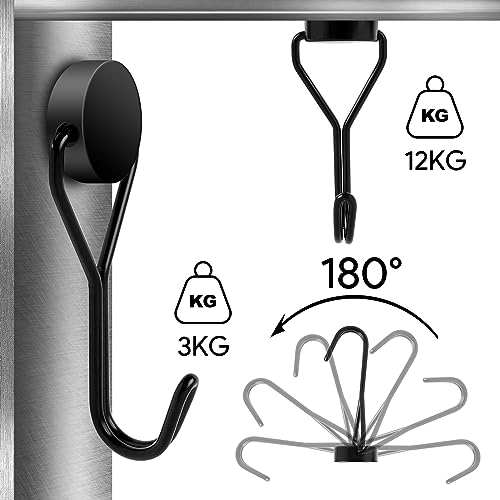 Multiuso: questo gancio magnetico può essere utilizzato in diversi luoghi, ad esempio in cucina, bagno, camera da letto, ufficio, ecc., in modo da poter riporre comodamente vari oggetti come asciugamani, vestiti, chiavi, spatole, ecc. Queste grucce magnetiche sono perfette anche per decorazioni da festival per appendere luci decorative.