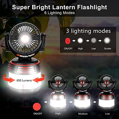 BUCASA Lampada LED da Campeggio Ricaricabile, 3 in 1 LED Potente Torcia con Power Bank da 8000 mAh e USB Ventilatore portatile, Accessori Campeggio Impermeabili per Esterno Tenda Emergenza