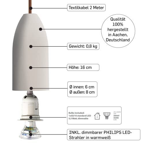 LAMPADINA INCLUSA & AMPIA SCELTA DI COLORI: le lampadine in dotazione sono di tipo LED e possiedono un attacco E27 medium. L'inserto della lampada è di tipo GU10. Il cavo in tessuto è regolabile fino a 2 m.