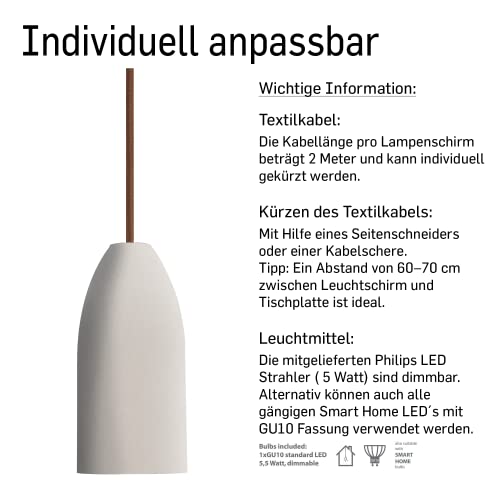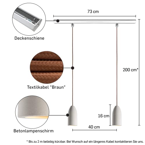 Buchenbusch Urban Design Light Edition, Set 2 Lampade a sospensione paralume in calcestruzzo con lampadina LED A+, stile industriale, cavo marrone