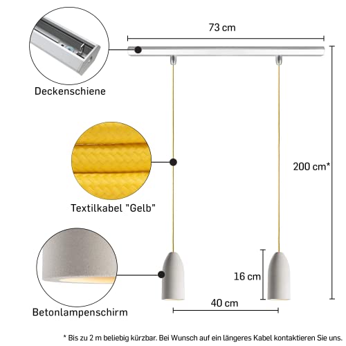 Buchenbusch urban design Light Edition, Set 2 Lampade a sospensione paralume in calcestruzzo con lampadina LED A+, stile industriale, cavo giallo