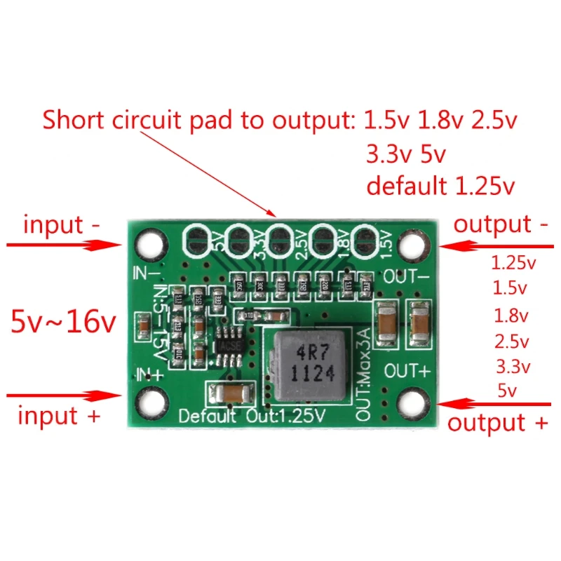 DC Buck Step Down Power Converter Board 5-16V To 1.25V 1.5V 1.8V 2.5V 3.3V 5V 3A