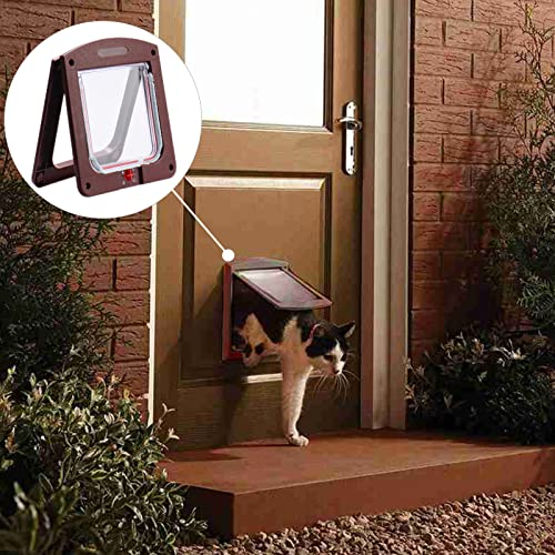 Buco Della Porta Del Cane Porta per Cani Media La Porta Gatti Con Chiusura A 4 Vie Si Installa Facilmente Con Il Telaio Telescopico Adatto per Animali Domestici Peso Inferiore A 14 Libbre (Marrone)