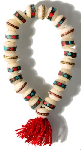 Mano-mala fatta di corno di yak con pietre a mosaico.