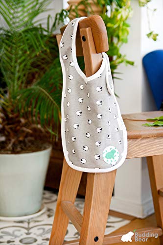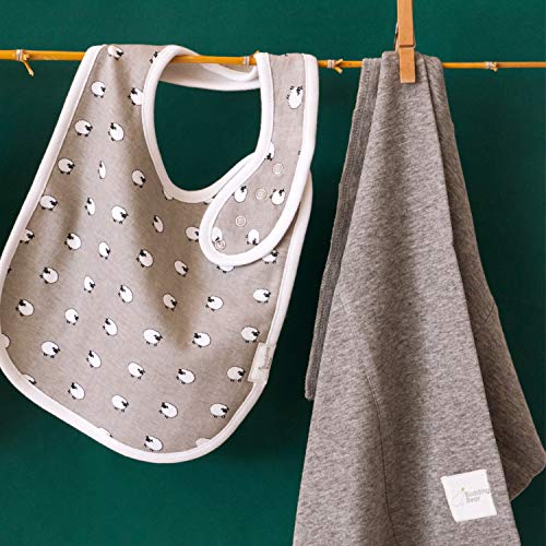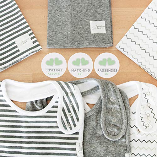 Budding Bear Unisex 5 Bavaglini Neonato Cotone Biologico 100% - Bavette Assorbenti Bambino - Bavaglino Grigio e Bianco Unisex con 4 Bottoni a Scatto Senza Nichel Regolabili- Da 0 a 36 Mesi
