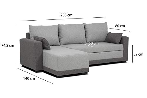 Un divano letto reversibile a 3 posti perfetto per essere usato sia come divano che come letto. Un mobile angolare da salotto in tessuto, morbido, confortevole, ben rifinito e di ottima qualità. Dal design classico e moderno al tempo stesso, è confortevole e perfetto per arredare la vostra casa. Fabbricato in Portogallo dai migliori professionisti del divano e della decorazione. Mobile angolare da salotto o altri ambienti della casa, in pelle artificiale, morbido