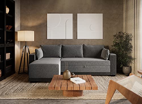 BUDWING Leah Divano Angolare a L in Tessuto 3 Posti Chaise Longue Angolo a Destra o Sinistra Convertibile Reversibile per Soggiorno Decorazione della Casa Grigio