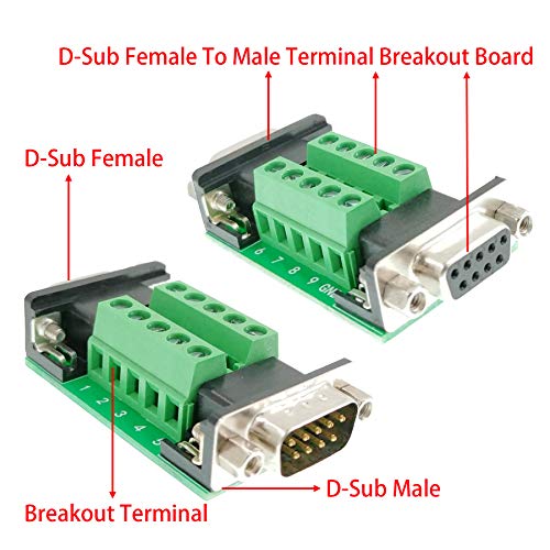 BUELEC DB9 Female And Male Connector In One Breakout Board,RS232/RS485/CAN/RS422 With DB9 Connector To Terminal Board Signal Module (DB9Female/Male 2PCS)