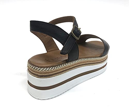 Bueno Art. 21WS5701 Sandalo Donna in Pelle Zeppa Alta (Black, Numeric_35)