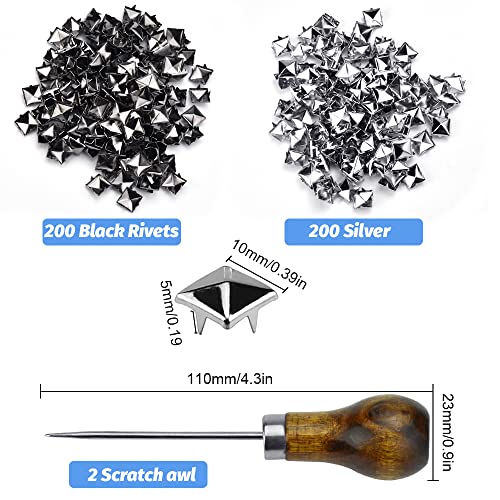BUENTYA 200 Rivetti Quadrati Nero e 200 Rivetti Quadrati Argento Rivetti Punk Piramide Rivetti Artigli Rivetti Punte quadrate a Forma di Piramide Rivetto per Scarpe Cintura Borsa con 2 Strumenti