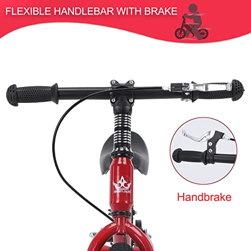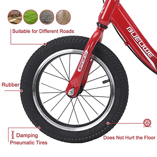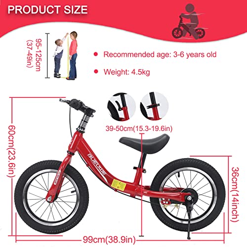 Bueuwe Bicicletta Senza Pedali da Equilibrio 2-6 Anni, Bici Senza Pedali con Freno, Altezza del sedile regolabile, Ruote da 14 pollici, Prima bicicletta giocattolo per bambini, fino a 30 kg,Rosso