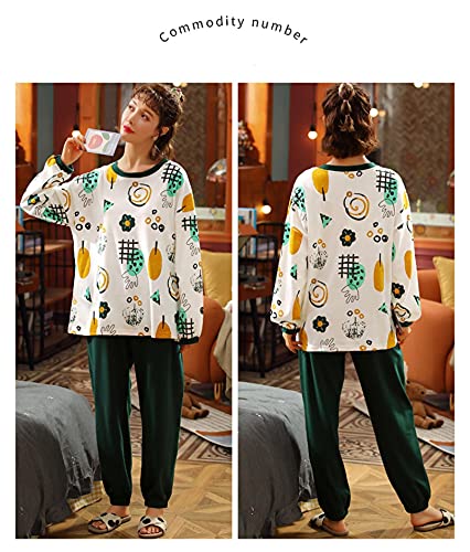 BuFanRenm Camicia da Notte, Pigiama a Maniche Lunghe da Donna Autunno Inverno Fumetto Set Girocollo Pigiama Femminile Taglie Forti M-5XL XXXL 5866