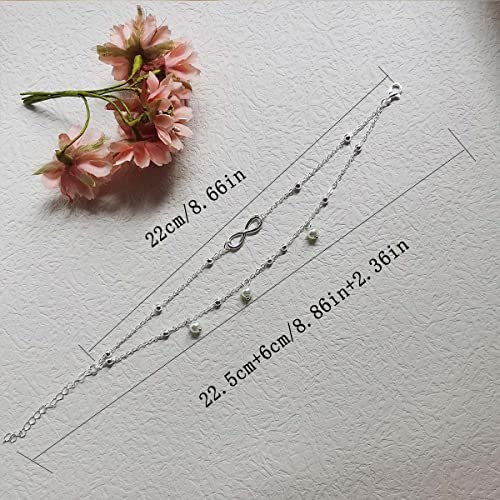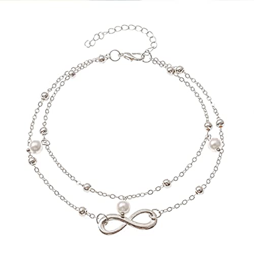 Bufenia Beach Pearl Cavigliera Argento Lucky 8 Braccialetti alla caviglia Catena con perline Gioielli per piedi regolabili per le donne