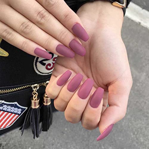 Bufenia Unghie finte a forma di ballerina satinata, opaca, per unghie finte di colore puro, per donne e ragazze, 24 pezzi (viola chiaro)