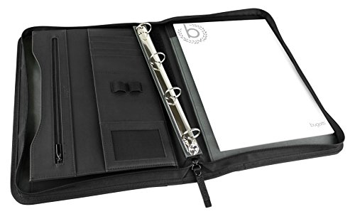 Bugatti Ufficio Cartella Portadocumenti A4 ad Anelli con Cerniera, Cartellina Portablocco con Maniglia - Nero