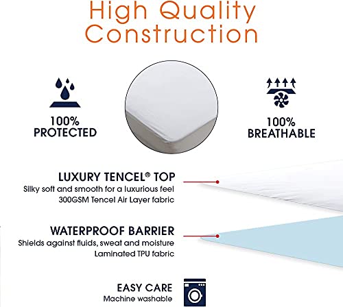 100% impermeabile: questo coprimaterasso a doppia dimensione è ipoallergenico di alta qualità con TPU non noisy che lo rende completamente resistente all'acqua
