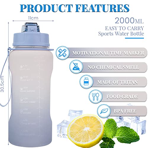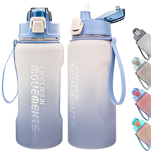 Bugucat Bottiglia d'Acqua 2.2L,Bottiglia Acqua Tritan con Coperchio a Prova di Perdite e Cannuccia,Borraccia Sportiva Riutilizzabile,Borraccia Adatto per Palestra,Yoga,Ciclismo,Viaggi(Blu e Bianco)