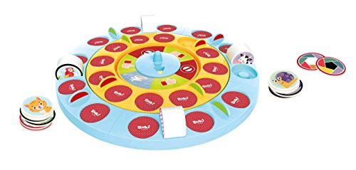 Assembla la base, scegli il livello delle carte, gira la ruota, e segui le istruzioni! Il giocatore che trova più coppie vince
