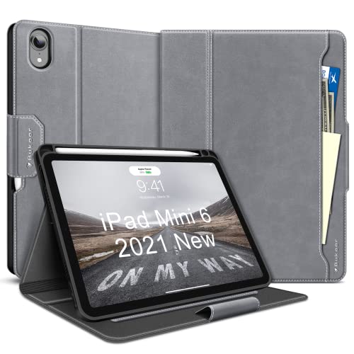 BuKoor Custodia per iPad Mini 6 2021, custodia in pelle PU per iPad Mini 6 da 8,3 pollici, con portapenne, tasca, auto sleep/wake, morbida cover magnetica posteriore in TPU (grigio)