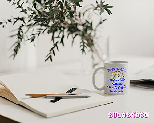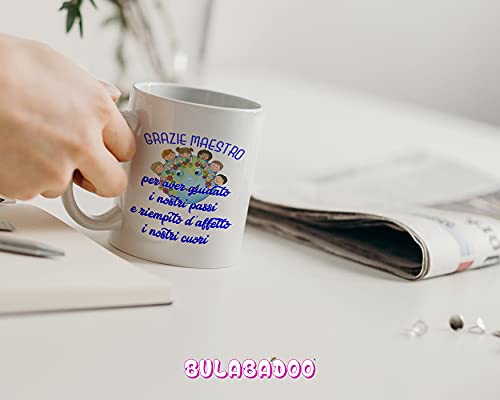 Bulabadoo Tazza Maestro - Tazza in Ceramica - Grazie Maestro per Aver Riempito d'affetto i Nostri Cuori - Maestro Regalo - Maestro Regalo Originale