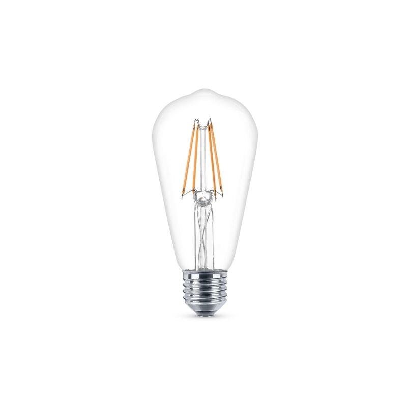 Bulbo ST64 Led a Filamento 7 W E27, Luce Naturale 4000 K Mod. LFT60N SKU: LFT60N Tecnologia: LED FILAMENTO Materiale: Vetro +alluminio Tipo di Lampada: Led Base Lampada: E27 Dimensioni: 140x64 mm Uso: Interno Tensione Nominale: 220-240 V Corrente: 58 mA Fattore di Potenza: >0,5 Potenza: 7 W Frequenza: 50/60 Hz Lumen: 806 Tipo di Led: Filamento Classe Energetica: A+ Temperatura di Colore: 4000 K Resa Cromatica: > 80 Gradi Diffusione: 330° Numero di Accensioni: 7500 Durata in Ore: 15000 Dimmerabile: NO Equivalenza incandescenza: 60 W Tempo di innesco: istantaneo Tipo di Confezione: Blister Garanzia 24 mesi