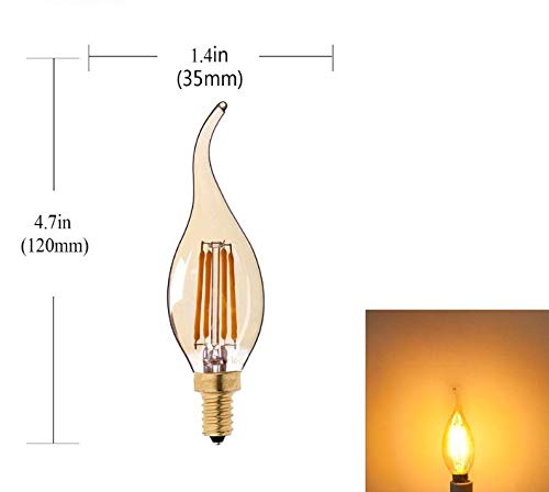 Bulbright 10 Pezzi lampadine a filamento LED Dimmerabile Candela C35 4W Attacco E14, Bianco caldo 2200K, Ambra Vetro, Equivalente a 40W, 220V AC, Dimmerabile (Flame Top)