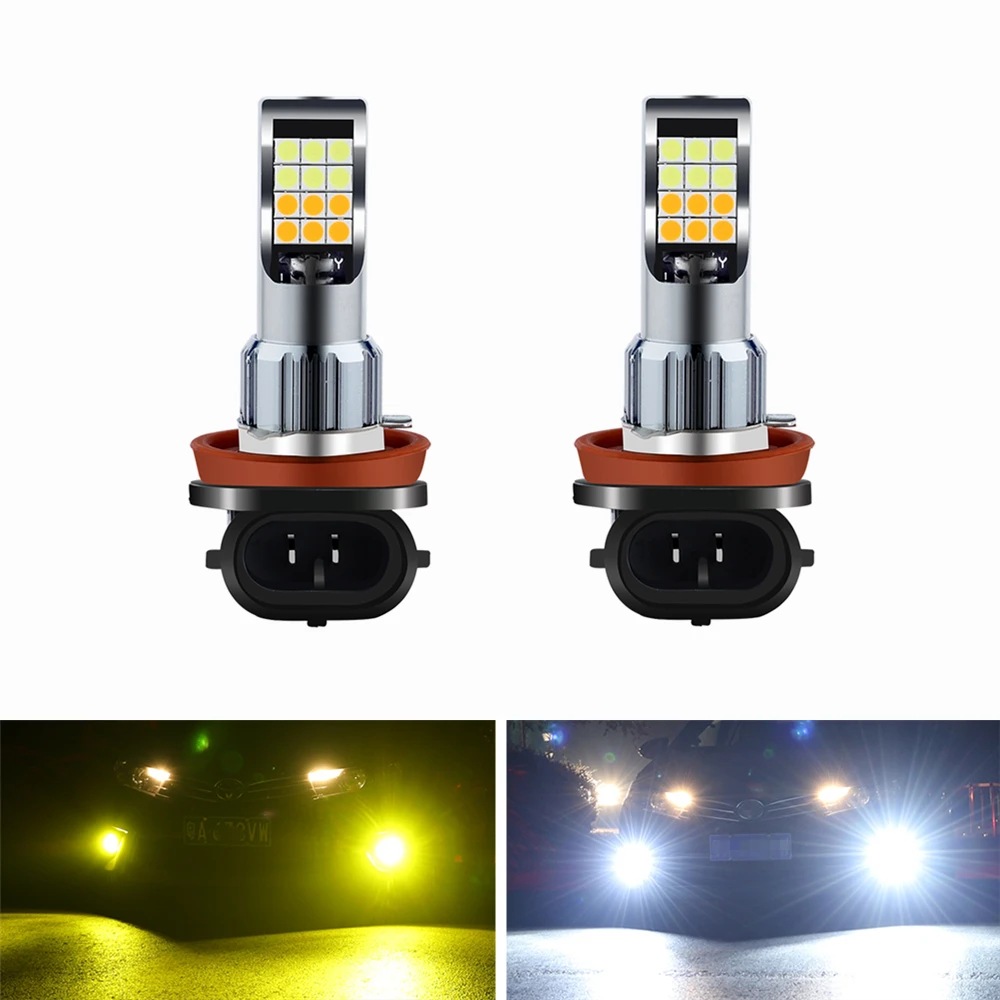 2pc H8 H9 H11 LED Bulbs Dual Color Auto Fog Driving Lamp HB3 HB4 9005 9006 H27 880 881 H3 Car Fog lights White Yellow 12V