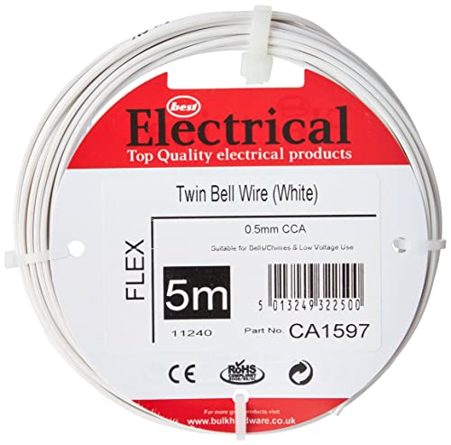 Bulk Hardware BH01470 Cavo per Campanelli a Due Conduttori, Bianco, 5 m x 0.5 mm