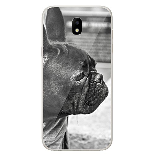 Cover in TPU gel flessibile infrangibile motivo Bulldog per Samsung Galaxy J3 2017, originale. Protegge da graffi, macchie e urti. Aderisce perfettamente al retro del vostro smartphone. Pulsanti del volume e dello sblocco protetti