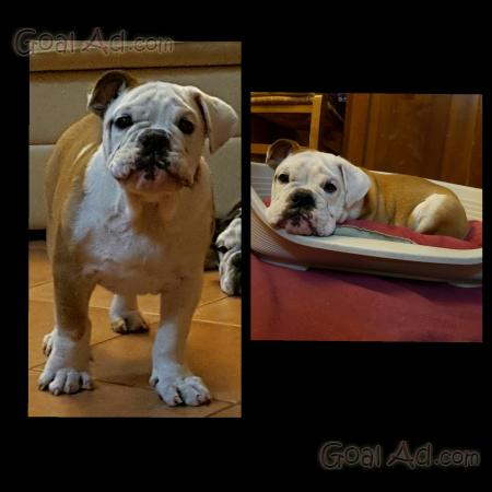 Bellissimo Bulldog inglese maschio 4 mesi bianco_arancio Alta genealogia completo di vaccini, microchip, pedigree e passaggio di proprieta'.Escluse malattie genetiche