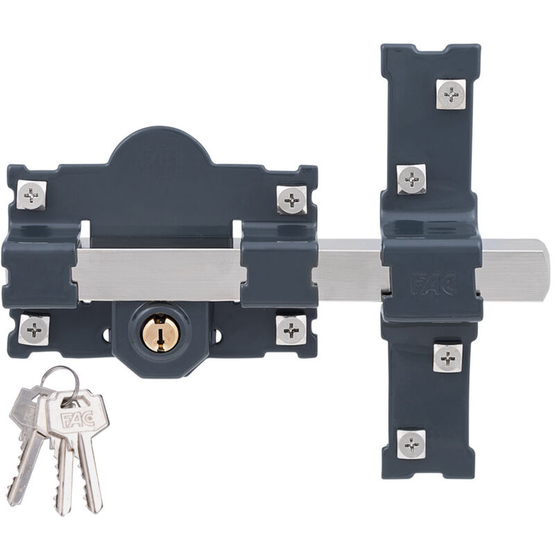 Bullone 101-l/105 b-70mm. serratura f01558 fac verniciata con barra da 18mm e piastra da 105mm. diverse applicazioni. contropiastra realizzata in lamiera di acciaio spessore 3 mm. Contiene 3 chiavi serreta Caratteristiche Tipologia: Tradizionale chiavistello sovrapposto con cilindro Chiavi serreta incluse: 3< li>Viti incluse: sì Riferimento produttore: F01558 Finitura: verniciata Colore: grigio scuro
