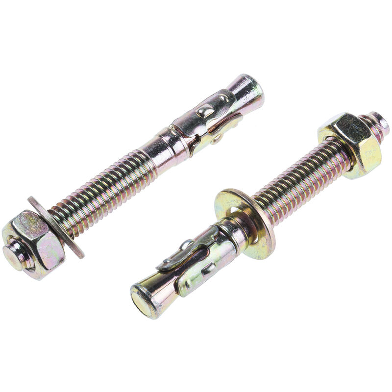 Dimensione della filettatura = M8 Tipo = Ancoraggio con bullone Lunghezza = 65mm Diametro foro di fissaggio = 8mm Spessore minimo di fissaggio = 20mm Materiale = Acciaio al carbonio Bulloni passanti zincati RS Pro. Gamma RS Pro di bulloni passanti zincati, ancoraggi con controllo della coppia adatti per l'uso su calcestruzzo con potenza superiore a C20/25. I tasselli a bullone passante sono uno dei bulloni di fissaggio più comuni. Sono progettati per fissare un componente al cemento, al mattone e alla pietra naturale. Disponibili in un'ampia gamma di lunghezze e dimensioni per adattarsi a un'ampia varietà di applicazioni, questi ancoraggi a bullone passante garantiscono un fissaggio sicuro adatto per carichi da medi a pesanti. La gamma di bulloni passanti include le seguenti misure: ;