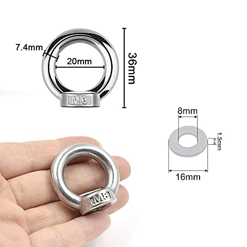 Bullone per occhio di sollevamento, anello di fissaggio in acciaio inox 304, vite a vite per sollevamento vivente e varie attrezzature di sollevamento ingegneristico, 10 pezzi M8 + rondelle in nylon
