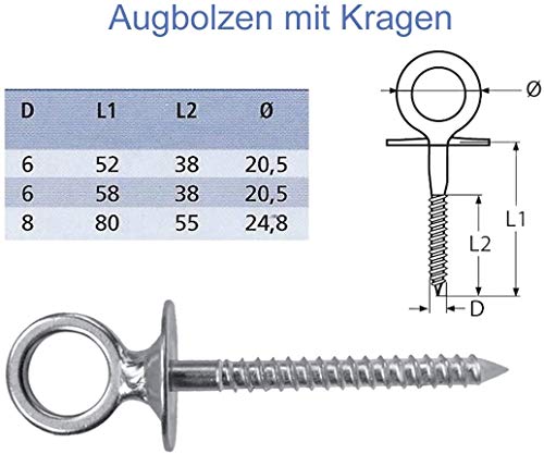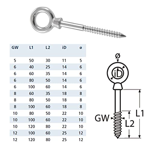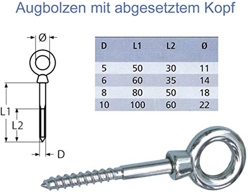 Bullone oculare M5 x 50 con filettatura in legno e testa a contrasto - Vite ad occhio - Vite a occhio in acciaio inox V4A