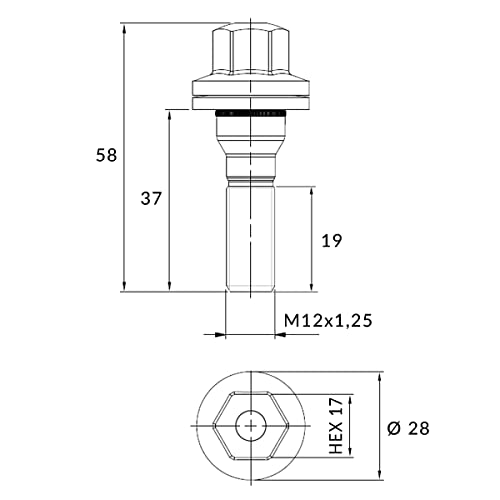 Bullone ruota M12 x 1,25 a fascia piatta SW17 Geomet Dacromet nero compatibile con Citroen Peugeot (Dacromet)