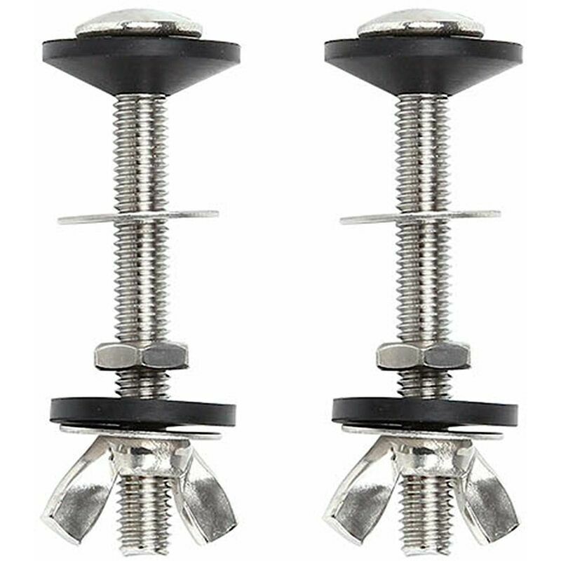 Kit smontato - Facile da montare, facile da usare. Set ricambi serbatoio acqua WC, vite cassetta, staffa fissaggio vaso WC.Materiale: realizzato in acciaio inossidabile 304 e gomma NBR, resistente.【Kit viti serbatoio WC】Kit viti in acciaio inossidabile per il collegamento della scatola al vaso.【Serbatoio alle viti della tazza】 Funziona bene per creare un collegamento sicuro e stretto tra il serbatoio del WC e la tazza. 【Fornitura】 Contiene due viti, rondelle coniche, rondelle e dadi ad alette. box to pan.Contenuto: Include due bulloni, rondelle coniche, rondelle e dadi ad alette.Materiale: Realizzato in acciaio inossidabile 304 e gomma NBR, resistente all'uso.Kit smontato: facile da montare, facile da usare.2 pezzi per set: 1 set di 2 per l'uso del serbatoio del WC.Specifiche:Nome: bullone del serbatoio del WC;