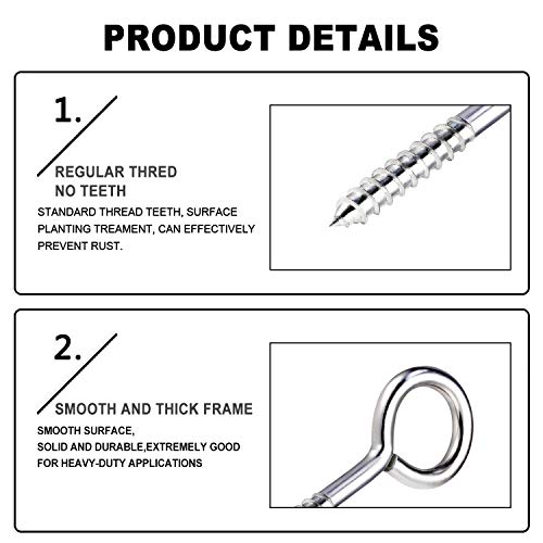 Eccellente resistenza alla corrosione e alla ruggine: ogni occhiello a vite in acciaio inossidabile è stato completamente zincato durante il processo di produzione, garantendo la massima resistenza alla corrosione e alla ruggine. Ciò significa che puoi usarli con sicurezza sia all'interno che all'aperto, innevato o piovoso. Faranno meglio di quanto ti aspetteresti.