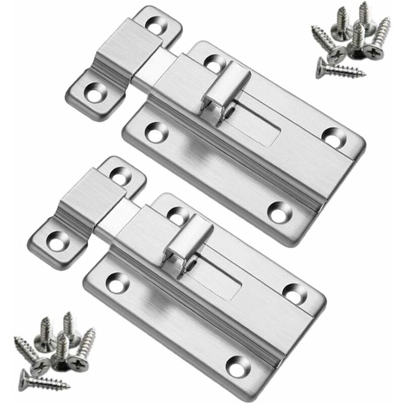 Dimensioni - Corpo bullone principale - 85 x 45 mm (L x P), Ricevitore - 45 x 17 mm (L x P). 【Materiale】Acciaio inossidabile. Realizzato in acciaio inossidabile di alta qualità, resistente alla corrosione, resistente all'usura, antiruggine, può durare a lungo. 【Applicazioni】 Queste chiusure per porte in acciaio inossidabile sono adatte a tutti i tipi di porte, come bagni, armadi, camere da letto, servizi igienici, finestre, mobili, armadi, porte per animali domestici, ecc. Il design di alta qualità è la scelta migliore, basta avvitare, facile da installare e mantenere. Semplice e conveniente, basso profilo e sicurezza. (Include 12 viti di montaggio per legno, non per metallo o materiali duri). Il fermo scorrevole fornisce un forte meccanismo di chiusura, può essere inserito per fissare la porta, fornendo forza e stabilità sufficienti per qualsiasi porta. Specifiche: Materiale: acciaio inossidabile Dimensioni complessive: corpo bullone principale - 85*45 mm / 3,35*1,77(L*W), ricevitore